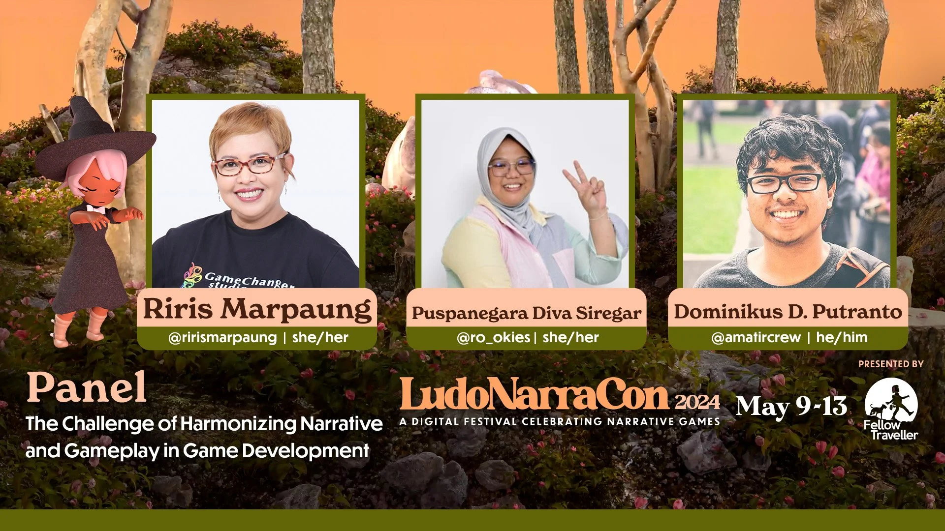 Making games is difficult and ensuring that our narrative vision aligns with the gameplay players need to go through is even more difficult. You don't want to see your kindhearted protagonist being lovely in the story while killing everyone in the gameplay session. Three seasoned game developers from Indonesia will share their experiences in harmonizing gameplay and narrative. Riris, from GameChanger Studio, the woman behind My Lovely Series, discusses maintaining narrative integrity while increasing game challenges in My Lovely Empress. Damas, of Glory Jam, known for deeply touching games like Rage In Peace and Hello Goodboy, shares insights on integrating narrative into the action-packed rogue lite game, Project GT. Lastly, Puspa, from Pendopo Creations, details the crafting of an adventure game that combines puzzle-solving with a rich narrative experience in Project Mansion.