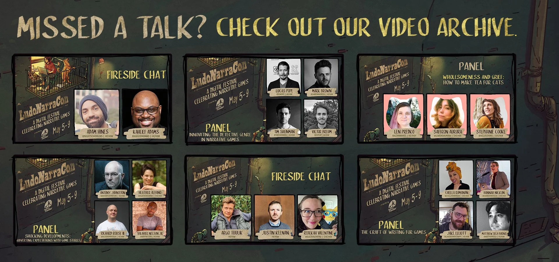 Below you can find our full LudoNarraCon 2022 archive of panels and fireside chats, originally hosted on Steam from May 5 - 9 2022.